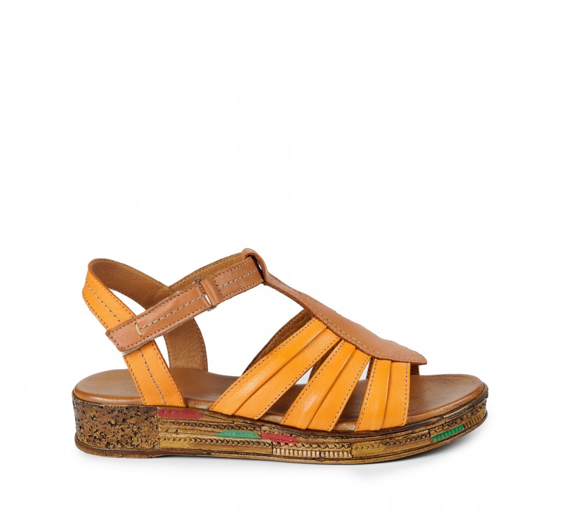 Hakiki deri kadın sandalet. Taban kısmı el boyaması ile renklendirilmiş, şıklığı kadar rahatlığıyla da kalbinizi fethedecek, yaz günlerinizin vazgeçilmezi olacak kadın sandalet.